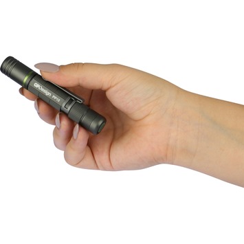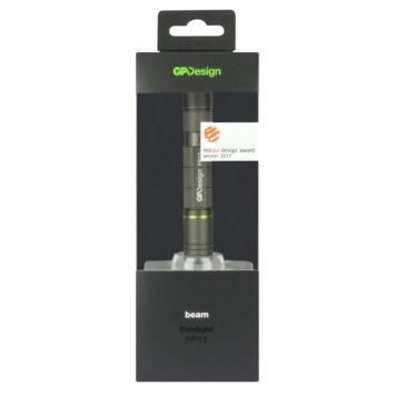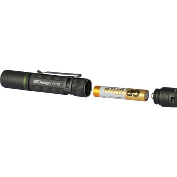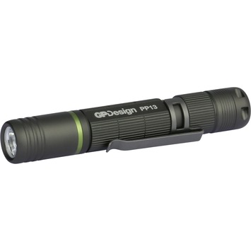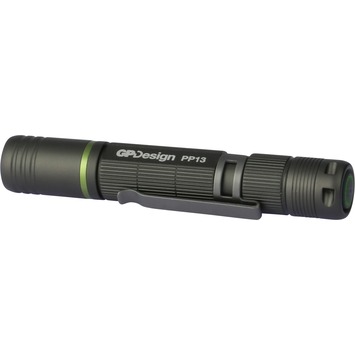 Slechts zo ‘groot’ als een wijsvinger is de PP13 penlight de kleinste telg uit de bekroonde collectie zaklampen van GP Design. Met zijn handige clip steek je deze lichtgewicht zaklamp als een pen in je borstzak of binnenzak. Maximale lichtintensiteit van 100 lumen en focusseerbare bundel. Inclusief AAA-batterij en handige clip.