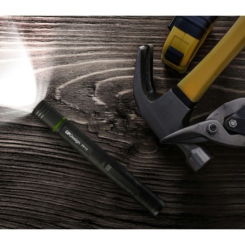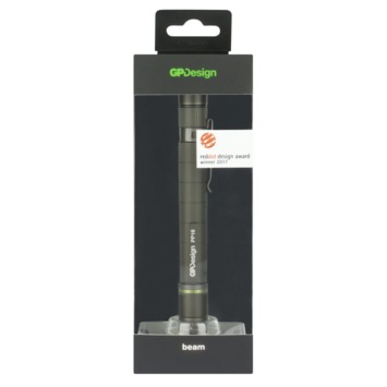 Wie niet zit te wachten op een knoeper van een zaklamp, zal ingenomen zijn met deze slanke staafzaklamp van GP Design. Een compacte led-penlight die op volle sterkte 140 lumen geeft. Blijft door handige clip stevig op zijn plek in broekzak of borstzak. Gemakkelijk met e´e´n hand te bedienen. Twee AAA-batterijen inbegrepen.