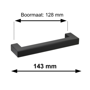 Deze strakke en stoere zwarte greep mag niet ontbreken op uw meubilair. De greep heeft een stijlvolle uitstraling met een hart op hart maat van 128 mm.