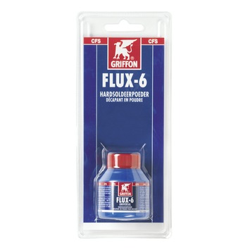 Griffon Flux-6® hardsoldeer poeder 35g is een universeel hardsoldeerpoeder voor het hardsolderen van koper, messing, ijzer en RVS. Het hardsoldeerpoeder is geschikt voor verbindingen waarbij hoge mechanische- en temperatuurbelasting (tot 300ºC) is vereist, zoals bij technische installaties in de koude- en warmtetechniek. U kunt het soldeerpoeder gebruiken in combinatie met zilverhardsoldeer.