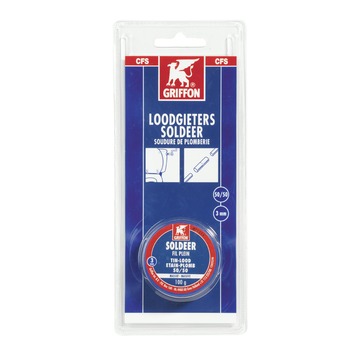 Griffon Loodgietersdraadsoldeer 50/50 massief 3mm Blister is massief soldeer met een 50/50 tin/lood verhouding. Dit draadsoldeer is geschikt voor vrijwel alle metalen met loodgieterstoepassingen, met uitzondering van aluminium en legeringen.