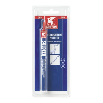 Griffon Loodgietersdraadsoldeer 50/50 massief 1,5mm Blister is massief soldeer met een 50/50 tin/lood verhouding. Dit draadsoldeer is geschikt voor vrijwel alle metalen met loodgieterstoepassingen, met uitzondering van aluminium en legeringen.
