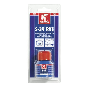Griffon S-39® RVS Bliter is een hoogactieve soldeervloeistof. Dit soldeermiddel is speciaal geschikt voor het zachtsolderen van RVS en andere moeilijk te solderen metalen, zoals (sterk vervuild of geoxideerd) zink, nikkel en chroom. Dankzij de bijzondere samenstelling kunt u Griffon RVS Blister in vrijwel alle toepassingsgebieden gebruiken. Inhoud: 80ml