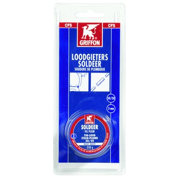 Griffon Loodgietersdraadsoldeer 50/50 massief 3mm Blister is massief soldeer met een 50/50 tin/lood verhouding. Dit draadsoldeer is geschikt voor vrijwel alle metalen met loodgieterstoepassingen, met uitzondering van aluminium en legeringen.