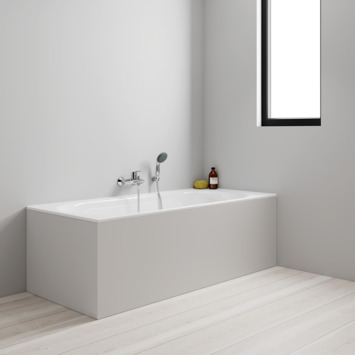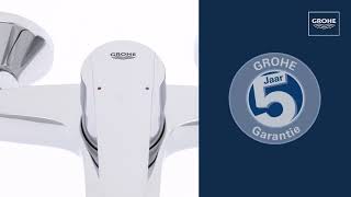 De Grohe Badkraan Start Chroom is een badkraan met omstelling voor bijna iedere badkamer. Dit model is voorzien van wandrozetten en is makkelijk te bedienen met een solide metalen greep. De kraan is voorzien van GROHE SilkMove®: grote instelhoek en unieke keramische schijven zorgen voor een comfortabele en nauwkeurige bediening.