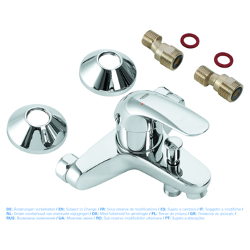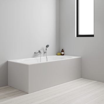 Een badmengkraan met een tijdloos en eenvoudig ontwerp, dat is de GROHE badkraan Swift met hendel Chroom. De badkraan bestaat uit een chromen badkraan met hartafstand 15 cm, 2 S-koppelingen, 2 rozetten en een montagehandleiding. Deze mooie krasbestendige GROHE StarLight® chromen kraan heeft een handige eenhendelbediening, waarmee je eenvoudig met 1 hand de kraan naar de gewenste temperatuur draait. Met de GROHE SilkMove® technologie doe je dat extra gemakkelijk: de grote instelhoek en unieke keramische schijven zorgen ervoor dat je de kraan comfortabel en nauwkeurig kan bedienen. In de kraan zijn keerkleppen geïntegreerd, die zorgen ervoor dat er geen vuil water terug de leiding in stroomt. De waterstroom kun je beperken door bij de installatie de doorstroombegrenzer in te stellen. Daarmee bespaar je op je waterverbruik. Het monteren doe je eenvoudig zelf met het meegeleverde materiaal. Met de handleiding is dat zo gebeurd! De kraan heeft het Belgaqua keurmerk en bij aankoop profiteer je ook nog eens van 5 jaar fabrieksgarantie.