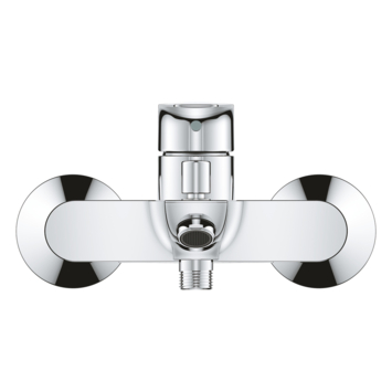 Wandmontage metalen greep. GROHE Longlife 35 mm kardoes met keramische schijven. Met Eco-Override-Stop. Met geïntegreerde drukafhankelijke temperatuurbegrenzer. Variabel instelbare temperatuurbegrenzer. Met omstelling: bad/douche uitloop met mousseur