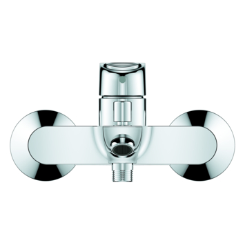 Wandmontage. Metalen greep. GROHE Longlife 35 mm kardoes met keramische schijven. Met geïntegreerde drukafhankelijke temperatuurbegrenzer. Variabel instelbare temperatuurbegrenzer. Met omstelling: bad/douche. Uitloop met mousseur. Douche-aansluiting onder 1/2"
