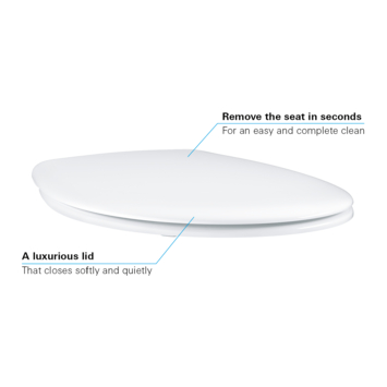 Kies voor de GROHE Bau Closetzitting met deksel om stijl, gemak en functionaliteit aan je badkamer toe te voegen. Dankzij de handige Quick Release en soft-close functies wordt het dagelijks gebruik een plezierige ervaring.