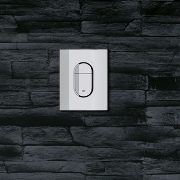 Grohe bedieningsplaat Arena Cosmopolitan chroom is een afwerkingsplaat die gebruikt kan worden in combinatie met het inbouwreservoir Grohe Rapid SL en Grohe Solido. Door de ovale vorm van de druktoetsen voor kleine (3l) en grote (6l) spoeling heeft deze duwplaat een moderne en strakke uitstraling. De spoelknoppen hebben een zachte, gebruiksvriendelijke vorm en zijn afgewerkt met de glanzende Grohe Long-Life chroomlaag die lang mee gaat en eenvoudig te reinigen is. Je kan de grote spoeling voortijdig laten stoppen door de kleine spoelknop in te drukken en zo nog extra water te besparen. De bedieningsplaat is zonder extra gereedschap te installeren. In deze reeks zijn de bedieningsplaten verkrijgbaar in chroom, mat chroom en alpine wit.