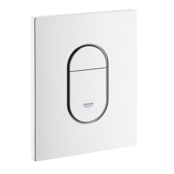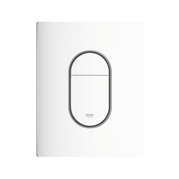 Grohe bedieningsplaat Arena Cosmopolitan wit is een afwerkingsplaat die gebruikt kan worden in combinatie met het inbouwreservoir Grohe Rapid SL en Grohe Solido. Door de ovale vorm van de druktoetsen voor kleine (3l) en grote (6l) spoeling heeft deze duwplaat een moderne en strakke uitstraling. De spoelknoppen hebben een zachte, gebruiksvriendelijke vorm en zijn afgewerkt met de Grohe Long-Life chroomlaag die lang mee gaat en eenvoudig te reinigen is. Je kan de grote spoeling voortijdig laten stoppen door de kleine spoelknop in te drukken en zo nog extra water te besparen. De bedieningsplaat is zonder extra gereedschap te installeren. In deze reeks zijn de bedieningsplaten verkrijgbaar in chroom, mat chroom en alpine wit.
