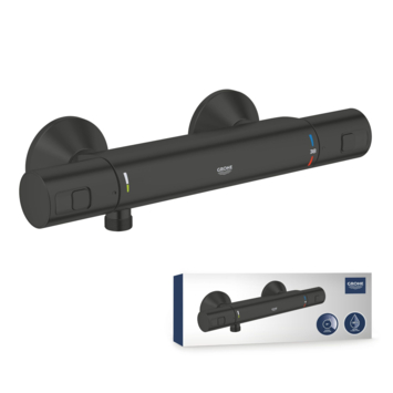 De waterbesparende GROHE Precision Start thermostatische douchemengkraan is fijn om te bedienen en is uitgerust met diverse veiligheidsfuncties. Ideaal voor gezinsbadkamers! De douchekraan is uitgevoerd in Matte Black (mat zwart) en levert binnen enkele seconden de gewenste temperatuur dankzij GROHE TurboStat-technologie. Ook heb je geen last van temperatuurschommelingen tijdens het douchen. Ontworpen met een GROHE Water Saving-functie bespaar je op je waterverbruik met behoud van een luxe douchekwaliteit. Via één druk op de EcoButton kun je deze de waterbesparende functie makkelijk in- en uitschakelen. Ook qua veiligheid is deze douchekraan een aanwinst. Zo is de GROHE SafeStop-knop ingesteld op 38°C om verbranding van de huid door heet water te voorkomen. De GROHE SafeStop Plus-temperatuurbegrenzer kun je instellen op 43°C voor extra veiligheid. De GROHE Precision Start thermostatische douchemengkraan heeft een krasvaste GROHE Long-Life Finish waardoor de mat zwarte afwerking onberispelijk blijft.