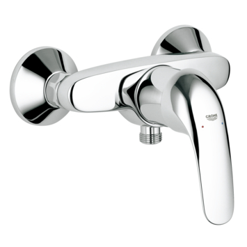 Een douchemengkraan met een tijdloos en eenvoudig ontwerp, dat is de GROHE douchekraan Swift met hendel Chroom 15 cm. De douchekraan bestaat uit een chromen douchekraan met hartafstand 15 cm, 2 S-koppelingen, 2 rozetten en een montagehandleiding. Deze mooie krasbestendige GROHE StarLight® chromen kraan heeft een handige eenhendelbediening, waarmee je eenvoudig met 1 hand de kraan naar de gewenste temperatuur draait. Met de GROHE SilkMove® technologie doe je dat extra gemakkelijk: de grote instelhoek en unieke keramische schijven zorgen ervoor dat je de kraan comfortabel en nauwkeurig kan bedienen. In de kraan zijn keerkleppen geïntegreerd, die zorgen ervoor dat er geen vuil water terug de leiding in stroomt. De waterstroom kun je beperken door bij de installatie de doorstroombegrenzer in te stellen. Daarmee bespaar je op je waterverbruik. Het monteren van de kraan doe je eenvoudig zelf met het meegeleverde materiaal. Met de handleiding is dat zo gebeurd! De kraan heeft het Belgaqua keurmerk en bij aankoop profiteer je ook nog eens van 5 jaar fabrieksgarantie.