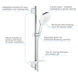 Bestaat uit: hand shower Vitalio SmartActive 150, glijstang 600 mm met metalen wandhouders, VitalioFlex Silver doucheslang 1750mm, GROHE EasyReach zeepschaal. GROHE EcoJoy 9,5 l/min. Doorstroombegrenzer. GROHE DreamSpray voor een optimaal straalbeeld. GROHE QuickFix Plus verstelbare afstand tussen beugels voor aanpassing aan bestaande boorgaten. GROHE TileFix instelbare diepte op bovenste wandhouder. SpeedClean anti-kalk systeem. Inner WaterGuide voor een langere levensduur. TwistFree voorkomt het meedraaien van de slang. Minimale dynamische druk 1,0 bar.