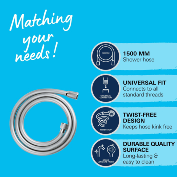 De Grohe VitalioFlex Comfort doucheslang van 150 cm biedt zowel stijl als gemak voor jouw badkamer. Deze chroomkleurige slang, gemaakt van hoogwaardig kunststof, geeft een moderne uitstraling. De gladde uitvoering van de slang zorgt ervoor dat hij comfortabel in gebruik is en eenvoudig schoon te maken. Dankzij het anti-twist ontwerp voorkom je dat de slang draait tijdens het douchen, wat zorgt voor een ontspannen en ongehinderde douche-ervaring. De slang heeft aansluitdiameters van 0,5 inch aan zowel de kraan als de handdouche, wat hem geschikt maakt voor de meeste standaard douchesystemen. Bovendien voorkomt de knikbestendige technologie dat de slang knikt, zodat je altijd kunt genieten van een constante en gelijkmatige waterstroom. Met de Grohe VitalioFlex Comfort doucheslang kies je voor een praktische en stijlvolle oplossing die je douchebeurten comfortabeler maakt. De gladde afwerking zorgt ervoor dat de slang er altijd goed uitziet en moeiteloos te onderhouden is.
