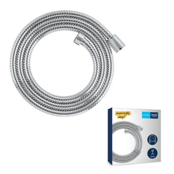 Op zoek naar een stevige doucheslang die je makkelijk zelf kunt installeren? De Grohe VitalioFlex Metal doucheslang van 175 cm biedt de perfecte combinatie van kwaliteit en gemak. Deze metalen slang met een chroomkleurige afwerking zorgt ervoor dat je jarenlang probleemloos kunt douchen. De knikbestendige technologie voorkomt knikken in de slang, zodat je altijd een gelijkmatige waterstroom hebt. Met een lengte van 175 cm biedt deze flexibele slang je de bewegingsvrijheid die je nodig hebt tijdens het douchen. De slang is eenvoudig te installeren dankzij de standaard aansluitingen van 0,5 inch voor zowel de kraan als de handdouche. Dit maakt de VitalioFlex Metal geschikt voor de meeste douchesystemen en ideaal als vervanging voor je oude slang. De installatie is een fluitje van een cent. Je hebt geen speciaal gereedschap nodig, en in een paar stappen is de slang klaar voor gebruik. Zo kun je snel weer genieten van een krachtige en gelijkmatige waterstraal, of je nu een snelle douche neemt of lekker wilt ontspannen na een lange dag. Voor wie op zoek is naar een betrouwbare doucheslang, is de Grohe VitalioFlex Metal van 175 cm de perfecte keuze. Een slimme upgrade voor elke badkamer, die je douchemomenten net dat beetje extra comfort geeft.