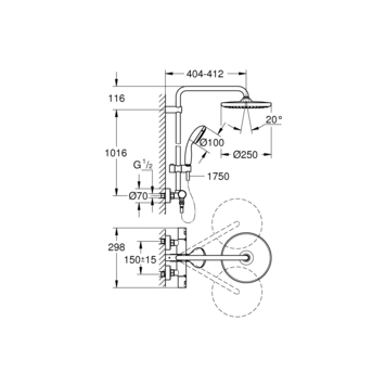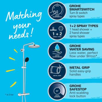 Grohe douchesysteem Vitalio Start 250 met handdouche en thermostaatkraan 2 standen chroom, max. 8,0 L/min bij 3 bar - hartafstand kraan 15 cm429.00