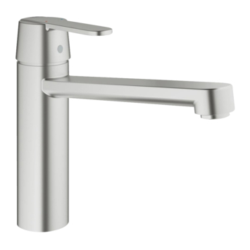 De Grohe Keukenkraan Get met Hendel SuperSteel is een keukenkraan met een medium, draaibare uitloop. De elegante SuperSteel uitvoering (RVS-look) is buitengewoon krasbestendig en hygiënisch en zeer geschikt voor de moderne keuken. Door de hoogte van de uitloop is het makkelijk om een pan of emmer onder de kraan te zetten. Dit model kun je makkelijk bedienen met een solide metalen greep. De kraan is voorzien van GROHE SilkMove®: grote instelhoek en unieke keramische schijven zorgen voor een comfortabele en nauwkeurige bediening.