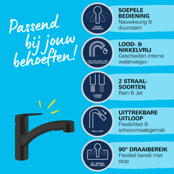 Grohe keukenkraan Quickfix Start uitrekbaar zwart