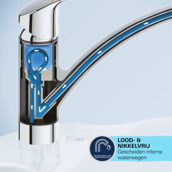 De Grohe Start Keukenkraan is ontworpen met Grohe Zero, waardoor het water niet in contact komt met lood en nikkel. Dit zorgt ervoor dat je altijd schoon, fris water hebt. De kraan is afgewerkt met de sterke Grohe Long-Life Shine-coating, die niet alleen krasbestendig is, maar ook slijtvast, waardoor de kraan er jarenlang als nieuw blijft uitzien. De kraan heeft een minimale waterdruk van 1 bar, wat zorgt voor een uitstekende waterstroom.