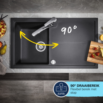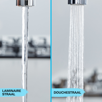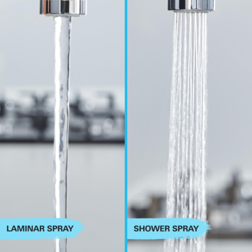 De uitloop van de kraan is 90° draaibaar, wat zorgt voor optimale bewegingsvrijheid, zelfs in kleinere keukens. Dankzij de SpeedClean technologie en de anti-kalk sproeigaatjes maak je de mousseur snel en eenvoudig kalkvrij met slechts één vingerveeg, wat zorgt voor langdurig gebruiksgemak. De uittrekbare mousseur is uitgerust met Dual Spray en levert twee verschillende straalsoorten: een spatvrije laminaire straal, ideaal voor het wassen van groenten, en een krachtige straal die uitstekend geschikt is voor de afwas en het schoonmaken van de keuken.