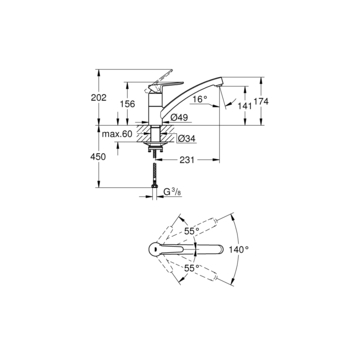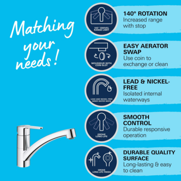 Deze Grohe keukenkraan Start Eco met hendel in chroom is door zijn Quickfix systeem snel en eenvoudig te monteren zonder gereedschap.