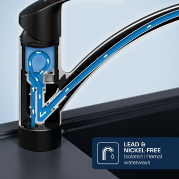De Long-Life keramische cartouche zorgt voor een soepele en betrouwbare bediening, terwijl de geïsoleerde binnenwaterkanalen het water veilig en vrij van lood en nikkel houden. De matzwarte afwerking geeft een moderne, stoere uitstraling aan je keuken en past bij uiteenlopende keukenstijlen.