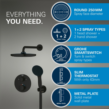 Grohe Precision Thermostat Perfect inbouw douchesysteem met Vitalio Comfort 250 hoofddouche vierkant Chroom