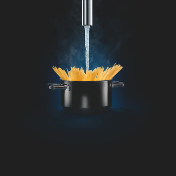 De hoge C-vormige uitloop maakt pannen vullen eenvoudig en door het150° draaibereik van de kraan biedt deze veel comfort en flexibiliteit. De GROHE SilkMove zorgt voor een soepele, precieze bediening van de hendel.