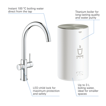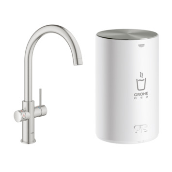 Grohe Red Compact keukenkraan met C-uitloop en 4 liter Kokend Water Boiler Supersteel