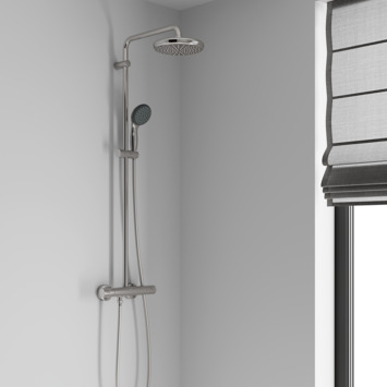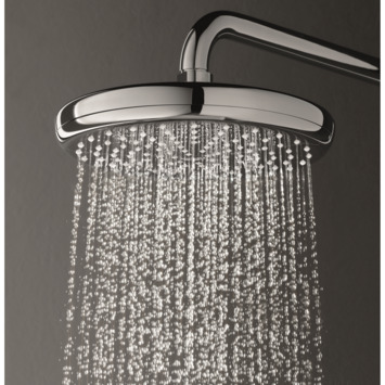 Wil jij graag een regendouche? Ga dan voor de Grohe Regendouche Vitalio Start 210 met Thermostatische Douchekraan. Dit luxe douchesysteem bestaat uit een regendouche met thermostatische Vitalio Start douchekraan, Grohe Vitalio Start handdouche en Grohe VitalioFlex Comfort doucheslang. Je hoeft voor deze complete doucheset dus geen andere accessoires te kopen. Doordat de douche-arm van de regendouche 180 graden kan draaien, kun je deze naar eigen voorkeur instellen. De aansluiting van de wateraansluiting hoeft daarom niet exact in het midden van je douchecabine te zitten. De Grohe Vitalio Start handdouche beschikt over 2 straalstanden, waar je makkelijk tussen wisselt. Dankzij het verstelbare glij-element en de Vitalio Comfort doucheslang van 175cm, kun je de handdouche gemakkelijk hoog of laag plaatsen. Kortom: de Grohe regendoucheset Vitalio Start 210 met thermostatische douchekraan is een allround doucheset.