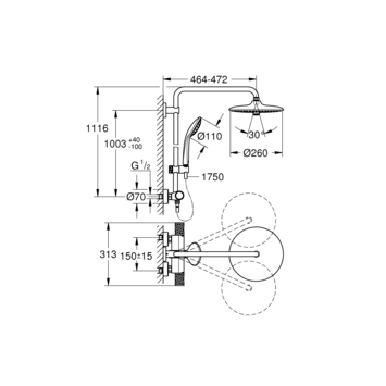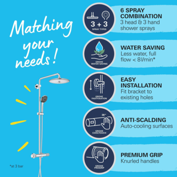 Grohe regendoucheset Quickfix Vitalio Joy - hoofddouche 26 cm - met handdouche en thermostaatkraan 3 standen chroom - hartafstand kraan 15 cm
