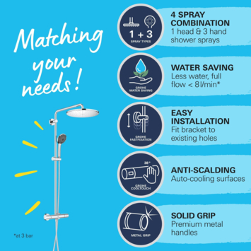 Grohe regendoucheset Quickfix Vitalio Joy XXL - hoofddouche 31 cm - met handdouche en thermostaatkraan 3 standen chroom - hartafstand kraan 15 cm
