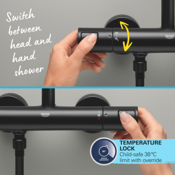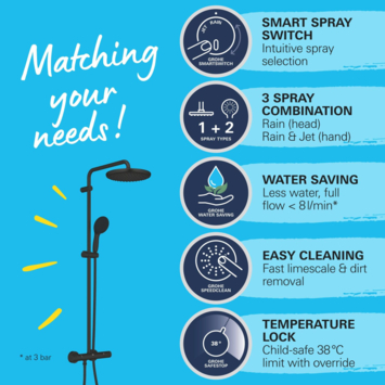 Grohe regendoucheset Quickfix Vitalio Start met handdouche 2 standen zwart - hartafstand kraan 15 cm