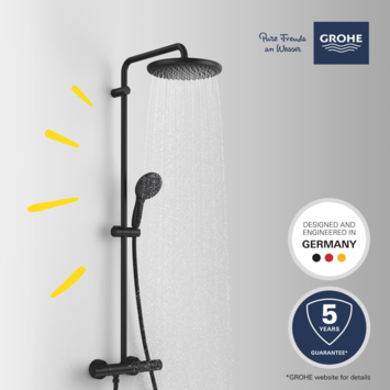 Maak je badkamer compleet met de Grohe Quickfix Vitalio Start regendoucheset in chique zwart. Deze set biedt niet alleen een stijlvolle uitstraling, maar ook een hoogwaardige douche-ervaring. De handdouche beschikt over twee straalstanden, zodat je eenvoudig kunt schakelen tussen een zachte verneveling en een krachtige straal, afhankelijk van jouw behoeften. Met de waterbesparende functie kun je genieten van een efficiënte douchebeurt zonder dat je waterverbruik stijgt. De anti-kalk technologie houdt kalkaanslag op afstand, wat betekent dat je minder tijd hoeft te besteden aan het reinigen van je doucheset. De 175 cm lange anti-twist slang zorgt ervoor dat de slang niet verstrikt raakt tijdens het douchen, wat bijdraagt aan een ontspannen douchebeurt. De verstelbare handdouchehouder maakt het mogelijk om de handdouche op de ideale hoogte in te stellen, zodat je altijd comfortabel kunt douchen. De set wordt geleverd met het benodigde bevestigingsmateriaal voor een eenvoudige installatie. Met de omstelknop kun je eenvoudig schakelen tussen de regendouche en de handdouche. Als je op zoek bent naar een doucheset die zowel stijlvol als functioneel is, dan biedt de Grohe Quickfix Vitalio Start alles wat je nodig hebt voor een moderne badkamerervaring.
