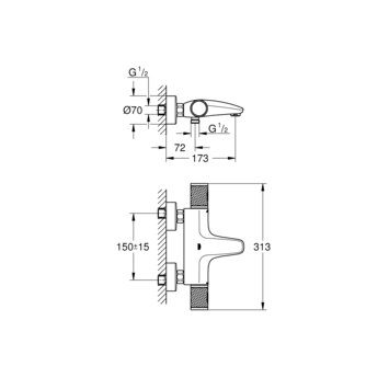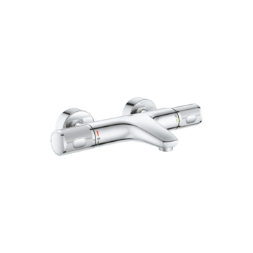 De Grohe Thermostatische Badkraan Precision Trend Chroom 15 cm past in iedere badkamer. Deze thermostatische badkraan zorgt voor een heerlijk bad of - douche door de automatische omschakeling - een heerlijke douche met een constante watertemperatuur, ook al zijn er fluctuaties in de waterdruk. De kraan is voorzien van GROHE TurboStat: hiermee wordt snel en continu de gewenste temperatuur bereikt. De kraan beschikt over GROHE CoolTouch®, waardoor het binnenkomende hete water wordt omspoeld door koud water en de buitenkant van de thermostaatkraan nooit warmer wordt dan de temperatuur van het douchewater. Met de SafeStop knop op 38°C voorkom je dat je kinderen de temperatuur verhogen, terwijl je dankzij de volumegreep met GROHE EcoButton tot 50% water kunt besparen. De robuuste ergonomisch gevormde metalen grepen zorgen tevens voor een optimale grip.