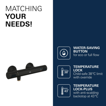 Dankzij de matzwarte afwerking krijgt je badkamer een moderne, stoere uitstraling. Installatie en onderhoud zijn eenvoudig, waardoor de kraan jarenlang probleemloos kan worden gebruikt. Met de GROHE Precision Flow thermostatische douchekraan haal je design, veiligheid en functionaliteit in één.