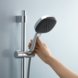 De bovenste montagebeugel is ook in hoogte verstelbaar, zodat je bij wandmontage optimaal gebruik kunt maken van bestaande boorgaten. De montage van de GROHE Vitalio Universal douchestang is snel en eenvoudig. Je hebt de keuze om de meegeleverde schroeven en pluggen te gebruiken voor wandmontage, maar je kunt de douchestang ook tegen de wand lijmen. Voor deze laatste optie heb je de apart verkrijgbare GROHE QuickGlue Set nodig. Deze sterke montagelijm biedt een oplossing als je niet wilt boren in muren.