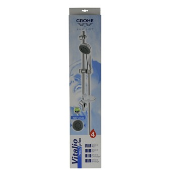 De GROHE Vitalio doucheset TrendPlus 4 bestaat uit een Vitalio handdouche Comfort 4, Vitalio Trend glijstang 700 mm met zeepschaal en Vitalioflex doucheslang Trend 1750 mm. De glijstang kan eenvoudig worden geplaatst op bestaande boorgaten. De Vitalio handdouche Comfort 4 heeft een diameter van 100 mm en is voorzien van vier straalsoorten. Bij de GROHE Rain straal geven fijne regenstraaltjes het effect van een zomerse regenbui op je lichaam. De GROHE Jet straal is een volle, krachtige straal die uw huid tot in de puntjes stimuleert. Bij de GROHE Massage straal zorgen pulserende waterstoten voor een aangenaam tintelende ervaring. De GROHE Champagne straal is zacht, parelend en bruisend, met miljoenen kleine luchtbelletjes in het water. Daarnaast zorgt GROHE DreamSpray® technologie voor een perfecte verdeling van het water. De handdouche is waterbesparend met een waterverbruik van maximaal 9,4 liter per minuut.
