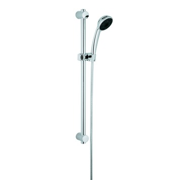 De GROHE Vitalio doucheset Trend 2 bestaat uit een Vitalio handdouche Trend 2, Vitalio Trend glijstang 700 mm en Vitalioflex doucheslang Trend 1750 mm. De glijstang kan eenvoudig worden geplaatst op bestaande boorgaten. De Vitalio handdouche Trend 2 heeft een diameter van 90 mm en is voorzien van twee straalsoorten. Bij de GROHE Rain straal geven fijne regenstraaltjes het effect van een zomerse regenbui op je lichaam. De GROHE Jet straal is een volle, krachtige straal die uw huid tot in de puntjes stimuleert. Daarnaast zorgt GROHE DreamSpray® technologie voor een perfecte verdeling van het water. De handdouche is waterbesparend met een waterverbruik van maximaal 9,4 liter per minuut.