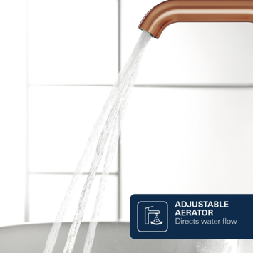 Met GROHE wastafelkraan Essence M-size met hendel en waste Warm Sunset heb je veel ruimte bij je wastafel door de medium hoge uitloop van 19,3 cm. Ook de 360° draaibare uitloop geeft je extra ruimte, comfort en flexibiliteit. Met de eenhendelbediening zet je gemakkelijk met 1 hand de kraan aan. Door de GROHE SilkMove keramische schijven stel je vooraf soepel en nauwkeurig de temperatuur in. Ook kun je daarmee exacter het watervolume regelen. Bovendien vergen deze keramische schijven weinig onderhoud. Dankzij de ingebouwde GROHE EcoJoy Technologie bespaar je flink op je waterverbruik: zelfs met een volle waterstraal verbruik je slechts maximaal 5,7 l/min! De AquaGuide mousseur is draaibaar, zo voorkom je gespetter over je wastafel heen. Met de hendel van de trekwaste aan de achterzijde van de kraan zet je eenvoudig het afvoer open of dicht. Met je handen in te heet of vies water is voorgoed verleden tijd! De installatie van de kraan doe je eenvoudig zelf met het vereenvoudigde GROHE QuickFix snelbevestigingssysteem. Met de meegeleverde flexibele aansluitslagen, waste en wasteinrichting, afvoerplug, bevestigingsmateriaal en montagehandleiding kom je niets tekort! De kraan geeft met zijn U-vormige uitloop op een flesvormige basis een robuuste uitstraling aan je interieur. De afwerking in het roodgoud kleurige geborstelde koper is een blikvanger en blijft met het juiste onderhoud jarenlang mooi in je badkamer. Besluit je deze kraan te kopen? Dan profiteer je van 5 jaar fabrieksgarantie. De kraan is ook verkijgbaar in de kleuren Chroom, Supersteel (RVS), Cool Sunrise (geelgoud geborsteld messing), Nickel (geborsteld nikkel) en Hard Graphite (geborsteld grafiet). Zo kies je altijd de juiste kleur naar jouw smaak!