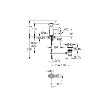 GROHE wastafelkraan Start Classic S-size met hendel en waste Chroom