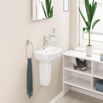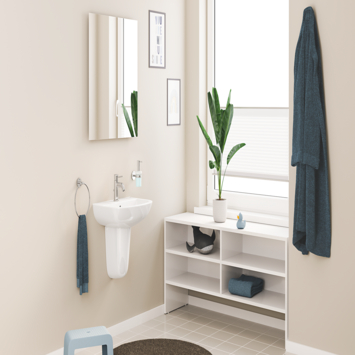 De GROHE wastafelkraan Start Classic S-size met hendel en waste Chroom is een kraan van klein formaat met groot gebruiksgemak! Met de hoogte van slechts 15,5 cm en bereik van 10,7 cm past deze kraan in iedere wastafel. Het kleine formaat is zeker handig als je een kleine badkamerruimte hebt of een laaghangend kastje boven je wastafel. Met de eenhendelbediening draai je de kraan eenvoudig met 1 hand open op de gewenste temperatuur en waterstraal. De GROHE Longlife ES keramische schijven maken het draaien daarbij soepel en afstellen gaat dus nauwkeurig. Bovendien bespaar je met de kraan energie, doordat de hendel in de middenstand alleen koud water geeft. Andere mengkranen laten in de middenstand gemengd water uitstromen. Met de GROHE EcoJoy waterbesparende techniek verbruik je maximaal 5,7 l/min. Met deze 2 toepassingen bespaar je dus zowel op je water- als op je energierekening. Niet alleen goed voor je portemonnee, maar ook voor het milieu! Bij de kraan hoort een afvoerplug met trekwaste: het afvoer zet je met de hendel aan de achterkant open of dicht. Met je handen in te heet of vies water is daarmee voorgoed verleden tijd! Gemakkelijk is ook het snelmontagesysteem: met de meegeleverde materialen, trekwaste en afvoerplug, flexibele aansluitslangen, bevestigingsmateriaal ga je snel aan de slag en sluit je alles binnen no-time aan. Kies je ervoor deze kraan te kopen? Dan kies je met zijn rechte uitloop, chromen afwerking en tijdloze vormgeving voor een kleine, gemakkelijke en besparende wastafelkraan die in elk interieur past. Bovendien profiteer je van 5 jaar fabrieksgarantie.