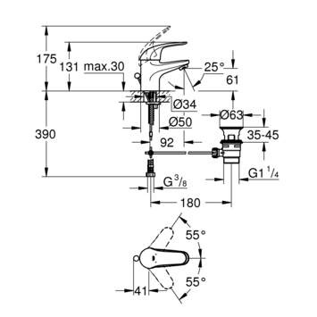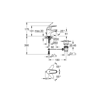 GROHE wastafelkraan Swift S-size met hendel en waste Chroom
