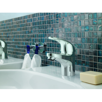 Een wastafelmengkraan met een eenvoudig en tijdloos ontwerp, dat is de GROHE wastafelkraan Swift S-size met hendel en waste Chroom. De kraanset bestaat uit een lage chromen wastafelkraan van 13,1 cm hoog met de uitloophoogte op 6,1 cm, flexibele aansluitslangen, waste met maat 1 1/4" met toebehoren en een snelmontagesysteem. Deze mooie GROHE StarLight® chromen wastafelmengkraan heeft een handige eenhendelbediening, waarmee je eenvoudig met 1 hand de kraan naar de gewenste temperatuur draait. Met de GROHE SilkMove® technologie doe je dat extra gemakkelijk: de grote instelhoek en unieke keramische schijven zorgen ervoor dat je de kraan comfortabel en nauwkeurig kan bedienen. Dankzij de trekwaste bedien je de afvoerplug eenvoudig met een hendel aan de achterzijde van de kraan. Zo hoef je niet meer met je handen in te heet of vies water om het afvoer open te zetten. Monteren doe je eenvoudig zelf met het meegeleverde materiaal en het snelmontagesysteem GROHE QuickFix®. Met de handleiding is dat zo gebeurd! Op de kraan krijg je 5 jaar fabrieksgarantie.