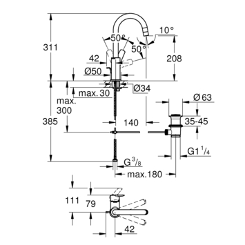 Met de geïntegreerde temperatuurbegrenzer bespaar je energie, terwijl de Grohe WaterSaving technologie het waterverbruik beperkt tot slechts 5,7 l/min, zonder in te boeten op prestaties. Het Grohe QuickFix installatiesysteem maakt de montage eenvoudig en snel: met de meegeleverde 3-in-1 tool en flexibele aansluitslangen kun je de kraan binnen enkele minuten installeren. Het 3-in-1 tool maakt het ook mogelijk om moeren vast te draaien, verbindingsslangen aan te trekken en de beluchter te onderhouden.