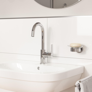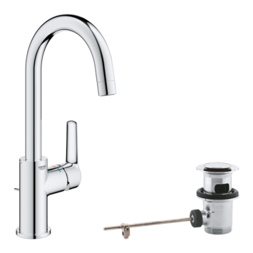 De Grohe Wastafelmengkraan Start L-size met waste heeft een slank profiel, een grotere uitloophoogte en biedt daardoor meer ruimte en gebruiksgemak. Deze L-maat eengreeps wastafelkraan is ontworpen voor eenvoudige ééngatsinstallatie, zodat je snel kunt genieten van je nieuwe kraan.