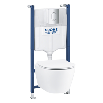 Het Grohe Wc-pack Como is een complete set waarin alles zit wat je nodig hebt: het inbouwreservoir Solido, een moderne rimless hangtoilet en de stijlvolle bedieningsplaat met een glanzende chroom afwerking. Dankzij het Grohe QuickFix systeem kun je de wc in een handomdraai aan een wand of tussen een systeemwand plaatsen. Het frame is stabiel en kun je veilig thuis ophangen. Je hebt geen gereedschap nodig om de slang, revisieschacht en watervoorziening aan te sluiten. Met een hangtoilet met verborgen waterreservoir zal het eenvoudiger dan ooit zijn om je badkamer te reinigen. Doordat de wc randloos is, kunnen bacteriën niet achterblijven. Hierdoor maak je de wc eenvoudig schoon en spoelt hij beter door. De zitting gaat langzaam naar beneden voor extra stilte en veiligheid. Ook kun je de zitting in enkele simpele stappen verwijderen, wat het schoonmaken ook weer vereenvoudigt.