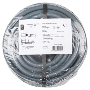 Met de Grondkabel YMVK-AS 2x2,5 mm² 25 Meter maak je een veilige ondergrondse aansluiting buitenshuis. Hij beschikt over een extra gevlochten ijzeren mantel, na een eerste grijze isolatielaag. Deze gevlochten mantel zorgt er voor dat de kabel extra beveiligd is, bijvoorbeeld in het geval van graafwerkzaamheden. Voor het aansluiten van de aarde is de kabel voorzien van een extra ader, de zogenaamde aardlitze. Met KEMA-keur. Lengte: 25 meter. Max. vermogen: 4600 Watt.