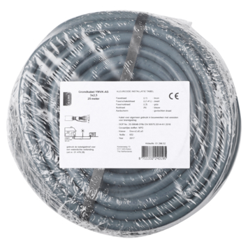 Met de Grondkabel YMVK-AS 3x2,5 mm² 25 Meter maak je een veilige ondergrondse aansluiting buitenshuis. Hij beschikt over een extra gevlochten ijzeren mantel, na een eerste grijze isolatielaag. Deze gevlochten mantel zorgt er voor dat de kabel extra beveiligd is, bijvoorbeeld in het geval van graafwerkzaamheden. Voor het aansluiten van de aarde is de kabel voorzien van een extra ader, de zogenaamde aardlitze. Met KEMA-keur. Lengte: 25 meter. Max. vermogen: 4600 Watt.